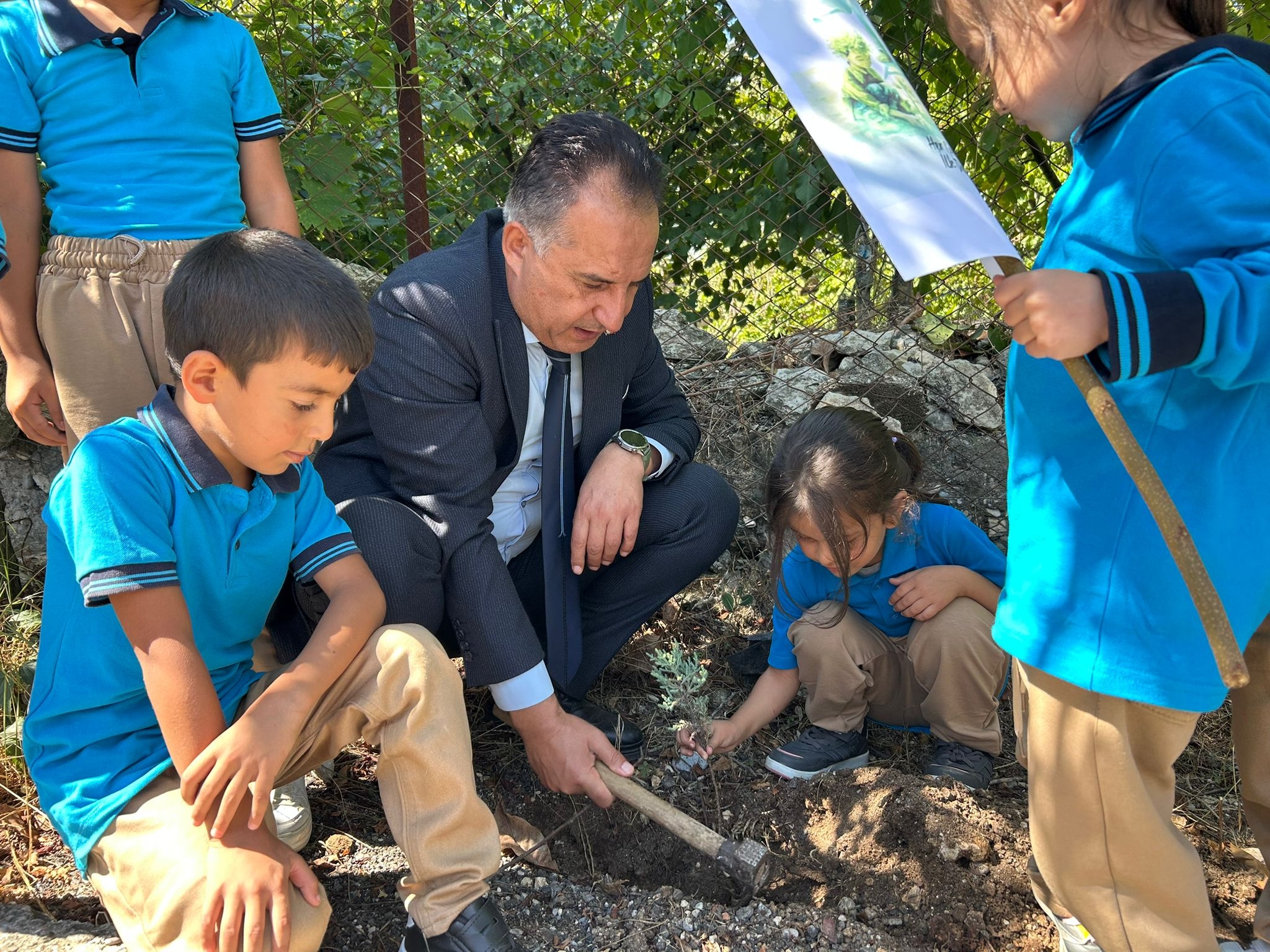 Her Çocuk Bir Fidan İlk Ders Yeşil Vatan Çocuklarımızda yeşil vatan duygusunu yeşertmek için Sarıkavak Şehit Murat Erdi Eker İlkokulu öğrencileri ile fidan dikimi gerçekleştirdik. #HerÇocukBirFidan